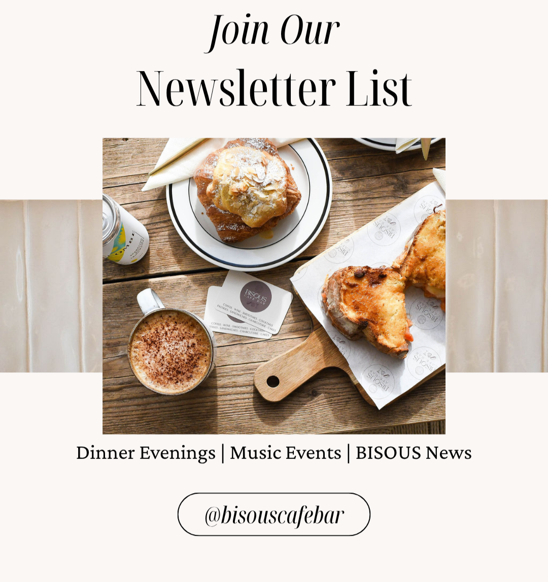 At Bisous Cafe + Bar, we warmly welcome you to reach out with any inquiries about our menu, events, or services.