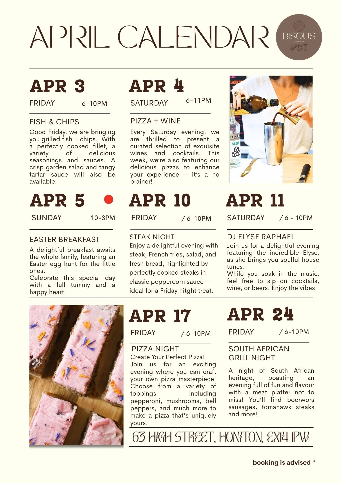 Booking is essential to secure your space as we have limited tables.