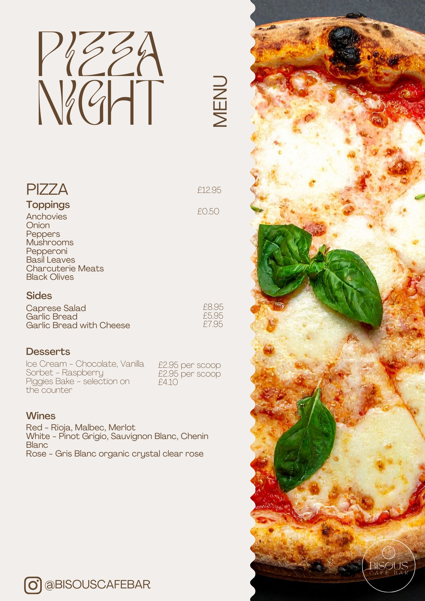 Jazz, pizza + Cocktails Saturday 14 March 2026 19:30 22:30 Google Calendar ICS She is back! Our favourite singer, Bonnie Elizabeth is coming back to BISOUS to entertain us for the evening as we enjoy some wonderfully delicious cocktails and a world class pizza!